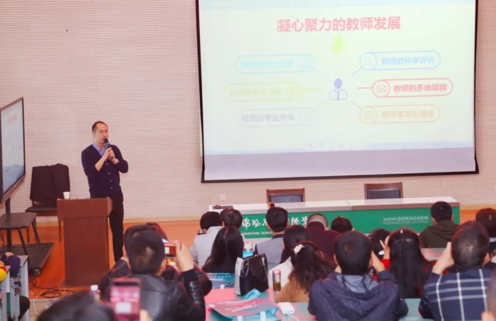 東辰高中陸易副校長介紹了東辰高中學(xué)習(xí)的十大成功法則:素質(zhì)教育法則、個性教育法則、人文教育法則、科學(xué)教育法則、英才教育法則、特長教育法則、國際教育法則、一體化教育法則、生活教育法則、自主教育法則。