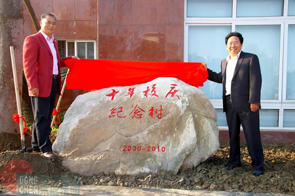 集團(tuán)董事長(zhǎng)鄔永平、校長(zhǎng)祝啟程為十年校慶紀(jì)念樹(shù)揭幕