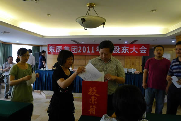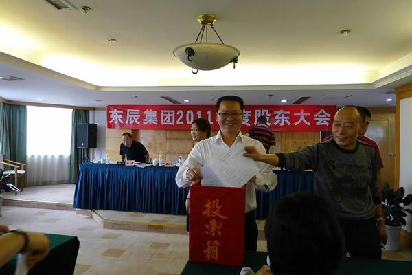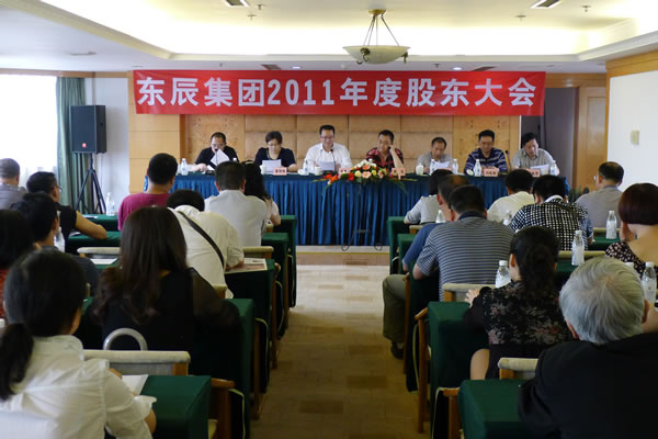 2012年5月11日上午10點,東辰集團2011年度股東大會在王子大酒店舉行。近50名股東參加了會議,代表股份1877.8萬股,占公司有表決權(quán)股份總數(shù)的81.73%,符合《中華人民共和國公司法》和本公司章程的有關(guān)規(guī)定。