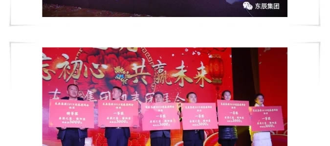 趙賢政總經理作了新年致辭,趙總向為公司發(fā)展作出巨大貢獻的合作伙伴及社會各界朋友,向公司3000多名員工及家屬表示深深地謝意,并致以節(jié)日的問候和新春的祝福! 2017年,對每一位中國人而言意義重大。黨的十九大隆重召開,為實現(xiàn)中華民族偉大復興的中國夢,描繪了嶄新藍圖。2017年,也是東辰集團在穩(wěn)步發(fā)展的道路上再次取得豐碩成果的一年。這些成績的取得,凝聚著公司全體員工的智慧和汗水,向大家表示崇高的敬意和衷心的感謝!