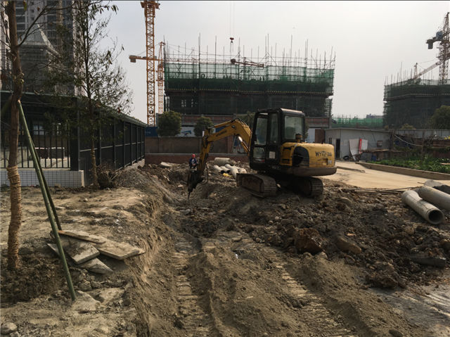 6、室外附屬:小區(qū)內(nèi)人行道區(qū)域面層粘貼全部完成,喬木、灌木已種植,綠化帶內(nèi)開始種植綠籬。小區(qū)外圍正在做面層鋪貼施工。