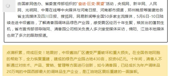 全國50多家主流媒體走近中壩醬油 感受清香園巨大變化