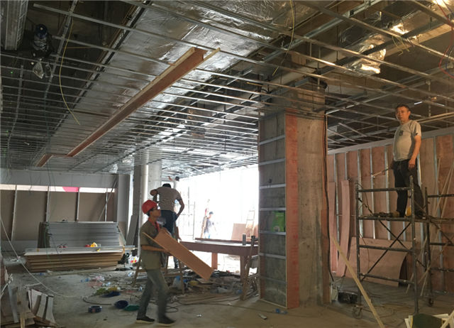 1、時尚百貨:一至五層公共區(qū)域吊頂、地面裝修施工完成,正在進行收邊清理,各商家正在裝修中。